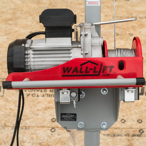 Each Wall-Lift Pro is rated to hoist wall sections up to 25' long and up to 440 lb. The extra long 15' control cord on the winch allows a single operator to raise sections up to 50' and 880 lb if a second Wall-Lift Pro is purchased.